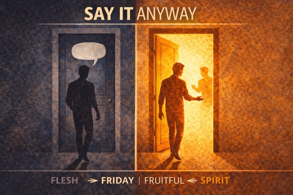 “I planted, Apollos watered, but God gave the growth.” 1 Corinthians 3:6 (ESV) You don’t need the perfect speech. You don’t need the right verse memorized or the ideal setting lined up. You just have to say the one thing….